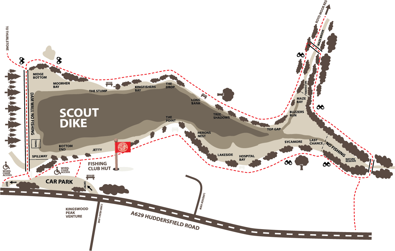 Scout Dike Reservoir, the home of Barnsley Trout Club for over 43 years, is off the A629 Huddersfield Road, just north of the pennine market town of Penistone. Look for the Barnsley Trout Club signs as you approach the Reservoir on the A629.